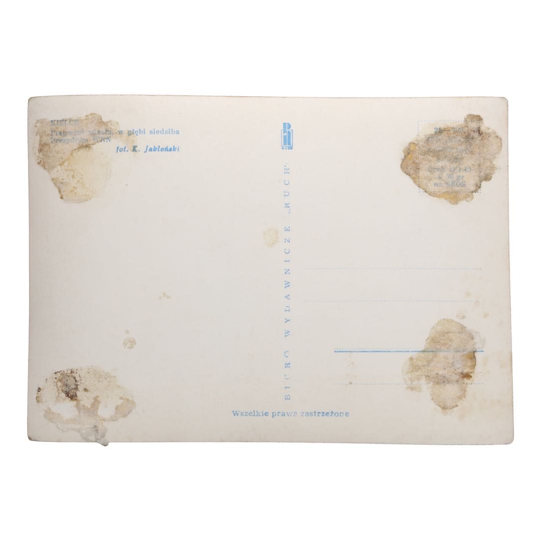 Kielce Fragment miasta PRL. Ta elegancka stara pocztówka o wymiarach 10,5 x 15 cm i cenie 25 zł jest nie tylko klasyczną ozdobą, ale także kapsułą czasu, która przeniesie Cię z powrotem na historyczne ulice Kielc w czasach PRL. Idealna dla kolekcjonerów, miłośników historii i jako wyjątkowy prezent, ta pocztówka łączy w sobie sztukę, kulturę i nostalgiczne wspomnienia.
