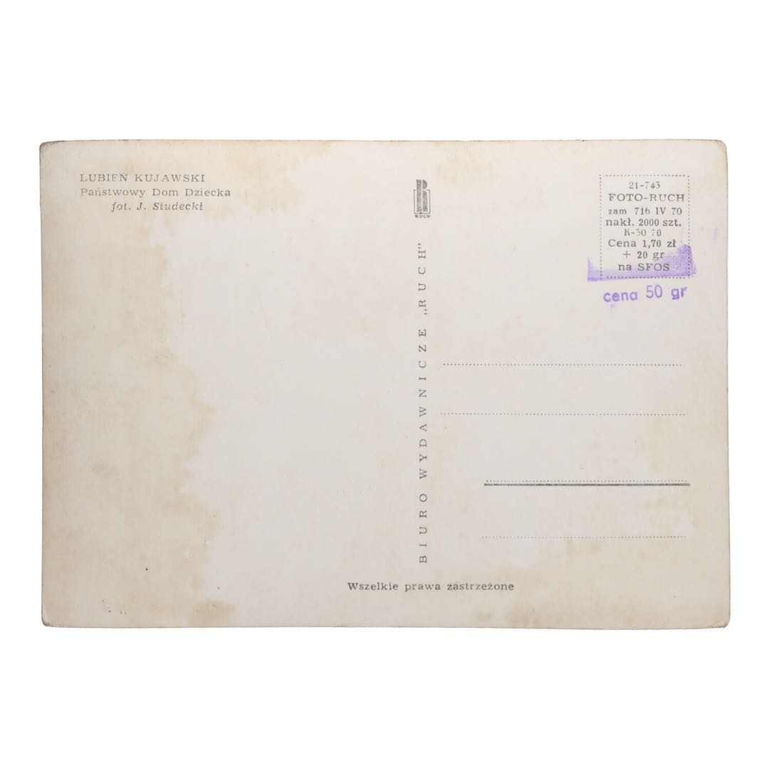 Autentyczność i rzadkość motywu "Państwowy Dom Dziecka w Lubieniu Kujawskim" czynią tę pocztówkę wyjątkową wśród przedmiotów kolekcjonerskich z okresu PRL.