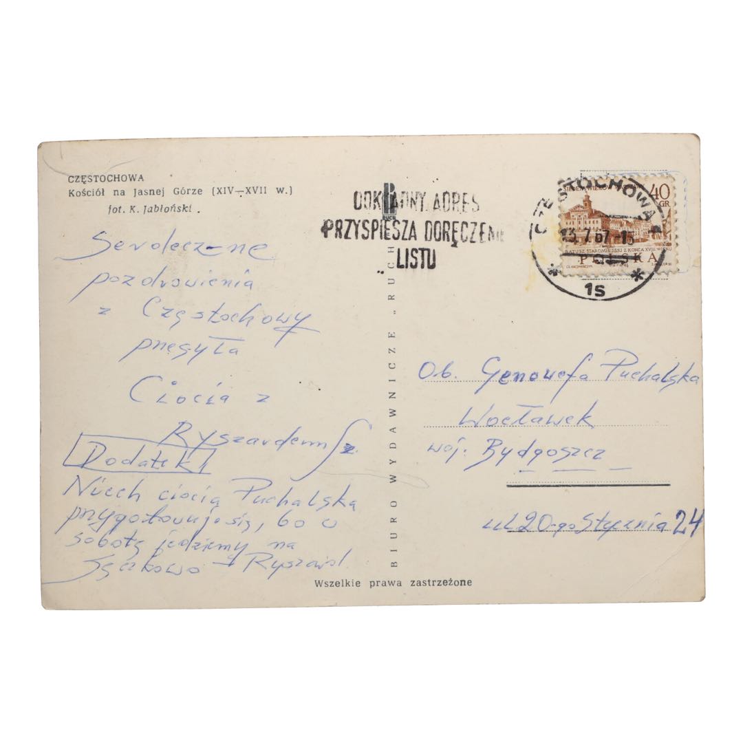 Unikalna pocztówka nie tylko przedstawia jeden z najważniejszych polskich symboli religijnych i narodowych, ale także jest świadectwem epoki, w której powstała. Jasna Góra, jako centrum duchowości i miejsce pielgrzymek, odegrała kluczową rolę w życiu wielu Polaków, a ta pocztówka jest bezcennym oknem na tamte czasy.