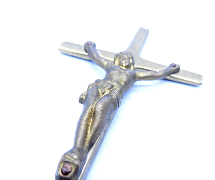 Stary KRZYŻYK mosiądz KRUCYFIKS XXw.