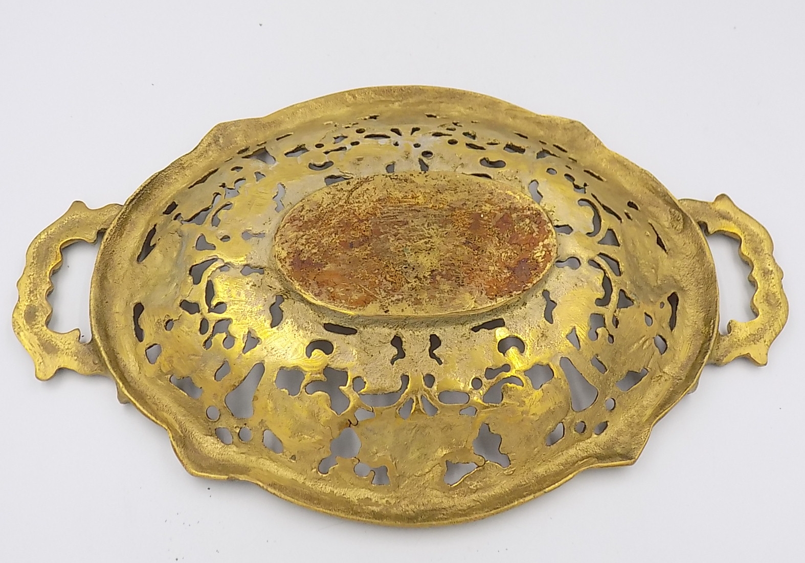 Stary półmisek z mosiądzu. Wymiary; 3,5 x 32 x 20,5 cm.