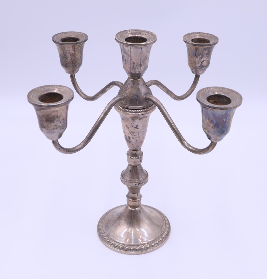 Srebrny świecznik Duchin Creation, pochodzący z Anglii i datowany na prawdopodobnie drugą połowę XX wieku. Ten misternie wykonany świecznik jest prawdziwym klejnotem dla miłośników wyrafinowanego piękna i wyszukanego stylu.