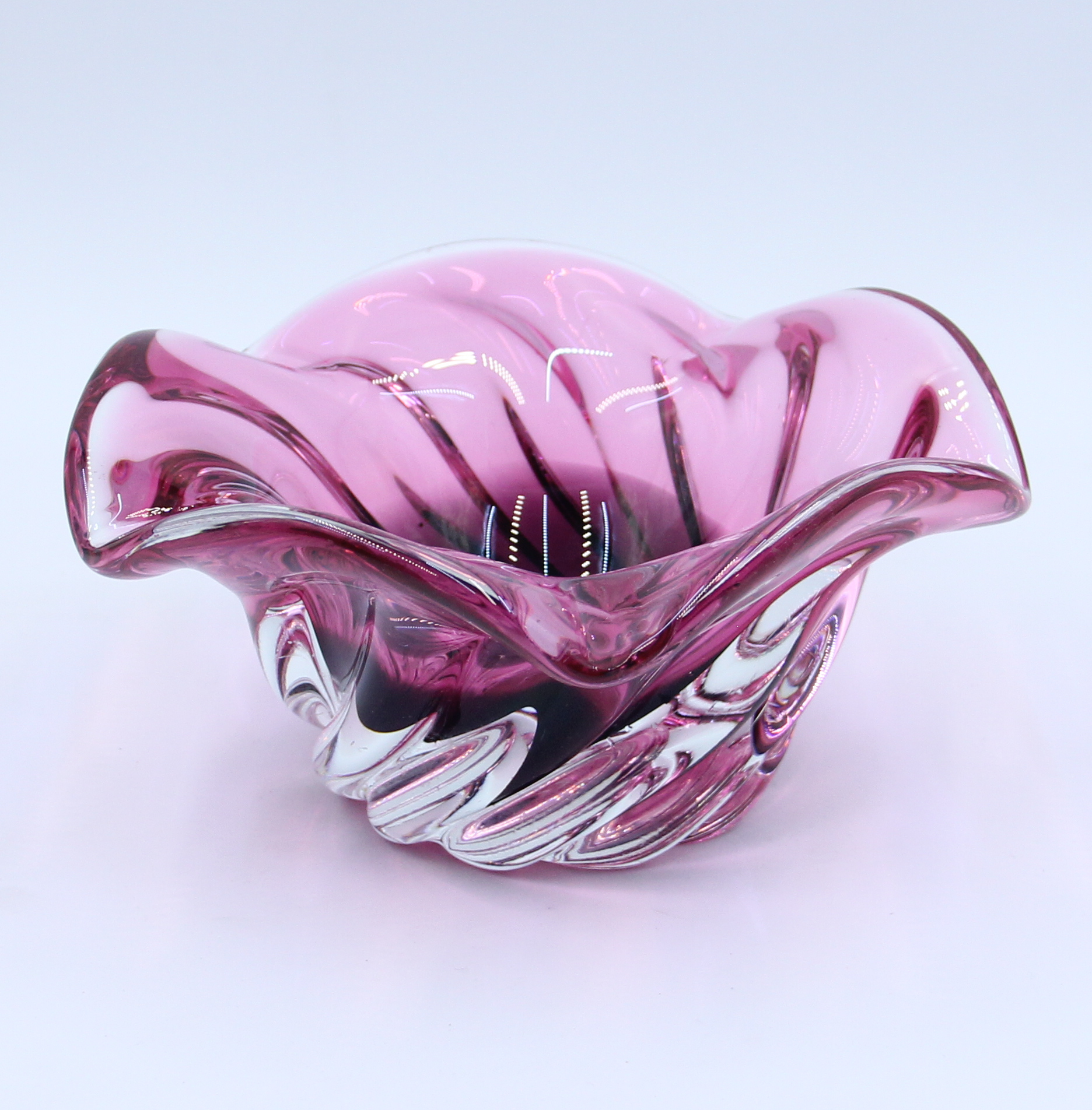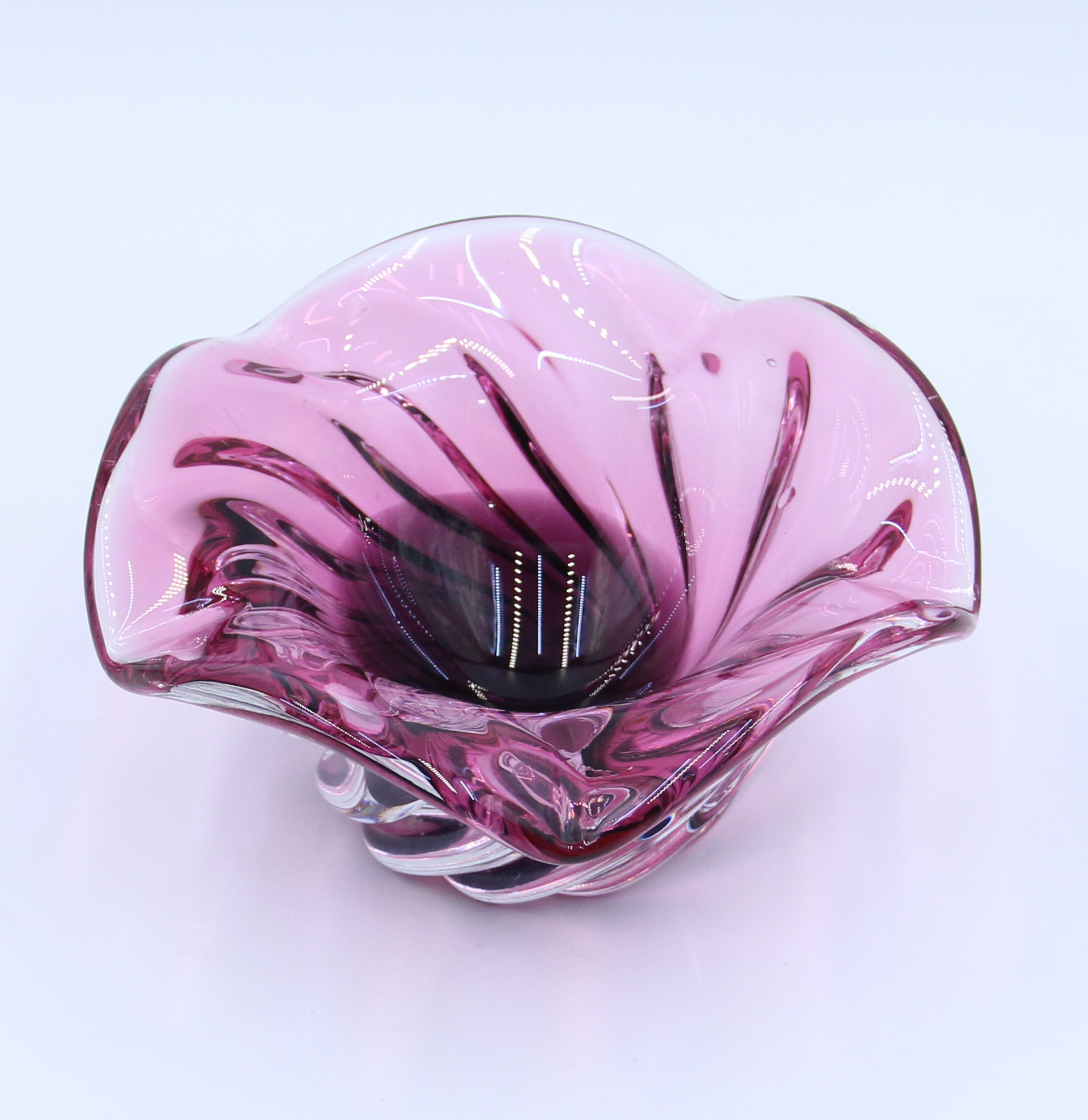 Piękna, ciężka misa na pękatej nodze. Wyprodukowana w latach 60-tych w Hucie Chribska Sklarna w Czechosłowacji.