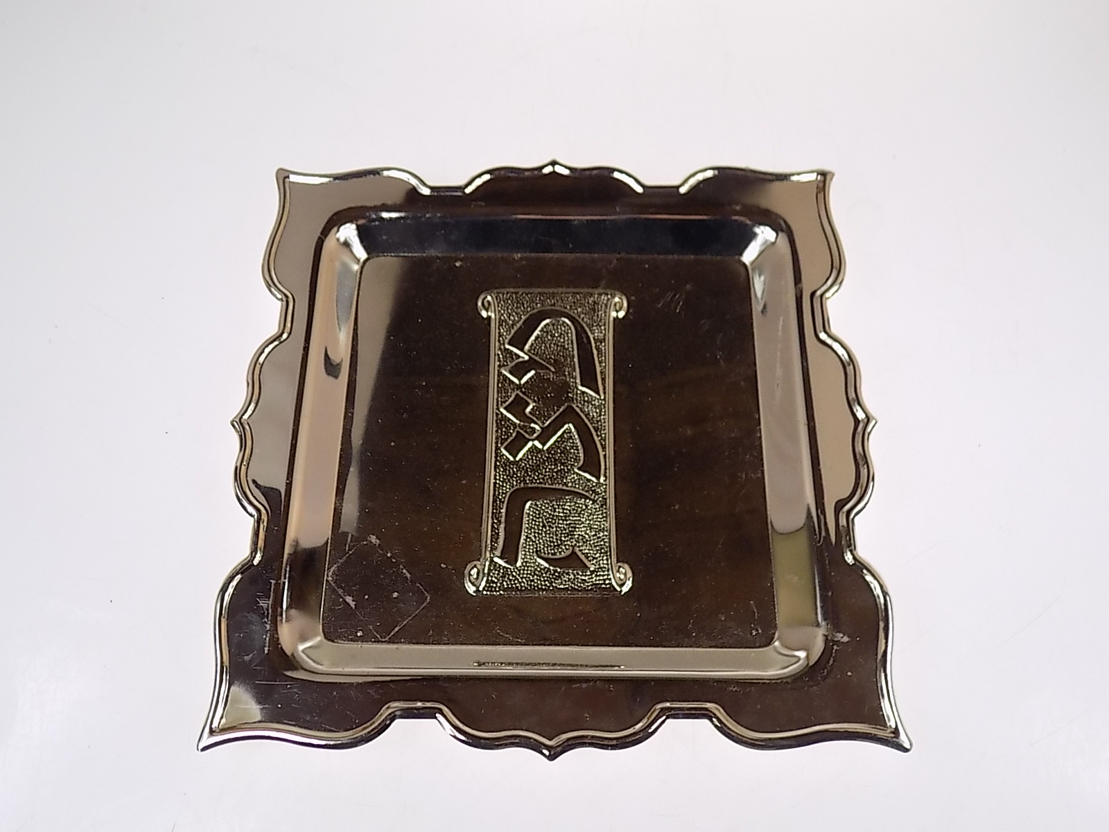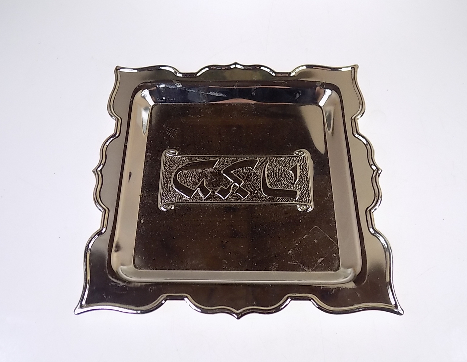 Żydowska taca platerowana. Wymiary; wys.2 x 26,5 x 26,5 cm.