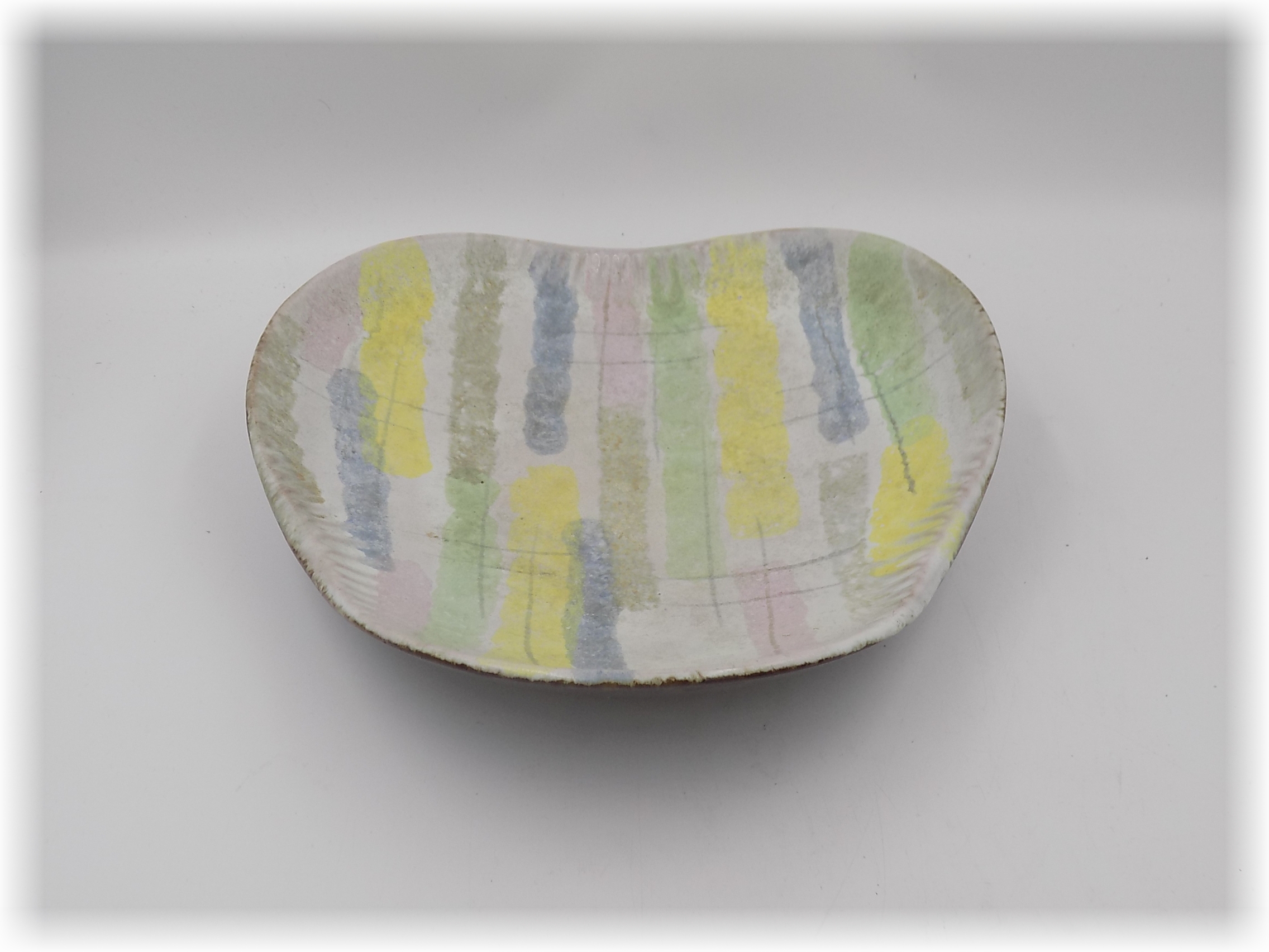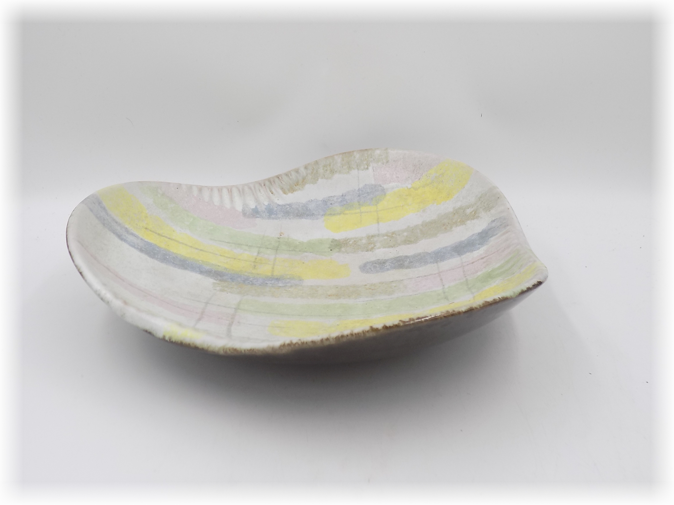 Talerz kamionkowy z dekoracją w stylu Picasso z lat 60/70-tych. Pochodzenie Germany. Sygnowany. Wymiary; wys.6 x 24 x 24,5 cm