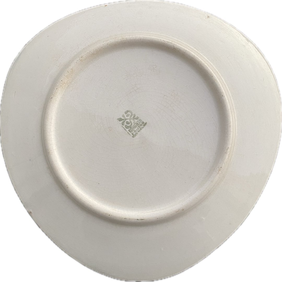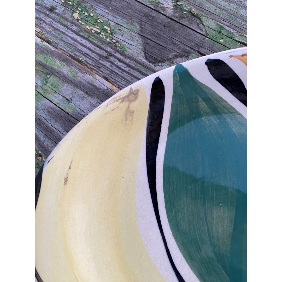 Fajansowy talerz deserowy z Włocławka z lat 60-tych. Sygnowany. Ręcznie malowany. Wzór 185 zatwierdzony w 1957 roku. Projekt Elżbieta Piwek. Ślady użytkowania, przytarcie glazury widoczne na zdjęciu. Wymiary; 17,5 cm.
