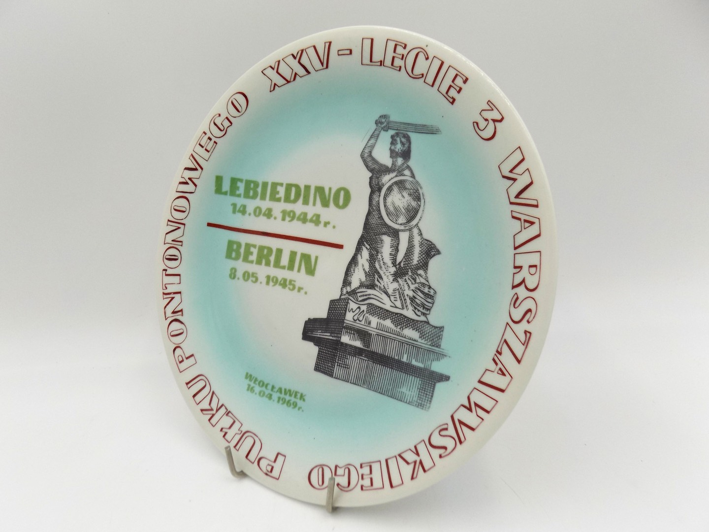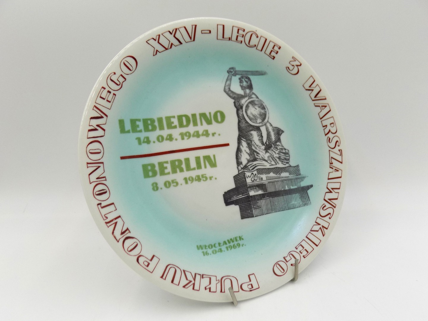 Wyjątkowy talerz okolicznościowy upamiętniający 25-lecie 3 Warszawskiego Pułku Pontonowego Okręgu Pomorskiego w okresie PRL. Ten wyjątkowy talerz został wyprodukowany w renomowanej włocławskiej manufakturze porcelany, co gwarantuje jego doskonałą jakość i trwałość.