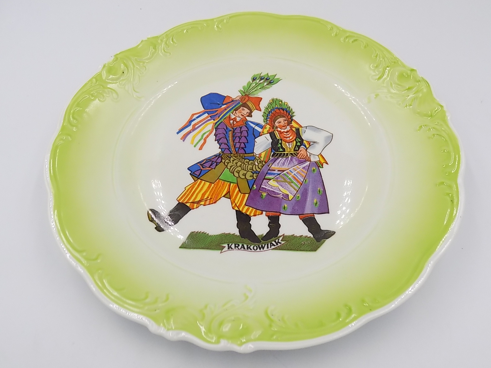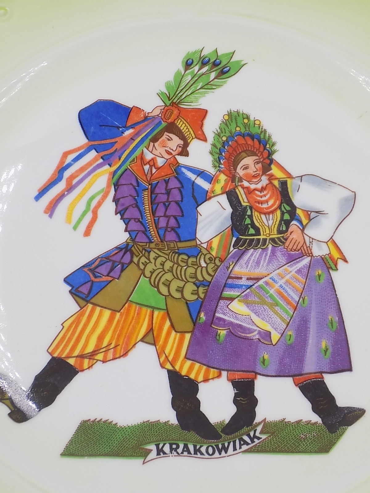 Talerz kolekcjonerski z serii "Tańce polskie" z Zakładów Porcelany Stołowej Wałbrzych w Starym Zdroju. Sygnatura stosowana w latach 1952-92. Wymiary; 26 cm.