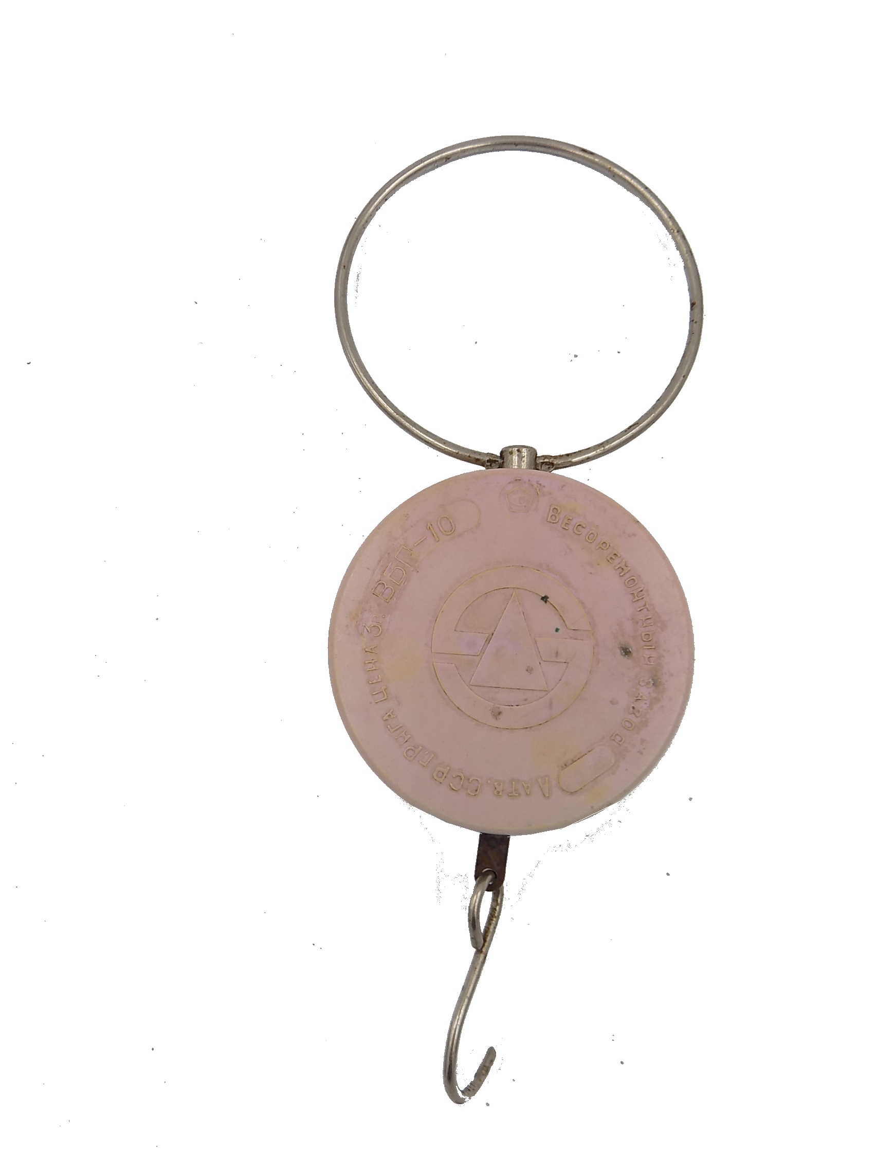 10 kg waga ręczna zza wschodniej granicy. Sprężyna wyrobiona. Wymiary; wys.21(7,5) x 2,5 cm