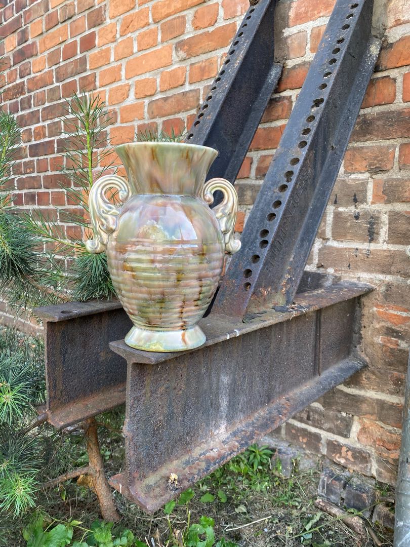 Fajansowy wazon z Włocławka z lat 50-tych. Sygnowany. Zdobiony metoda natryskową. Wzór 931-1. Wymiary; wys. 25 x 20 x 15 cm.