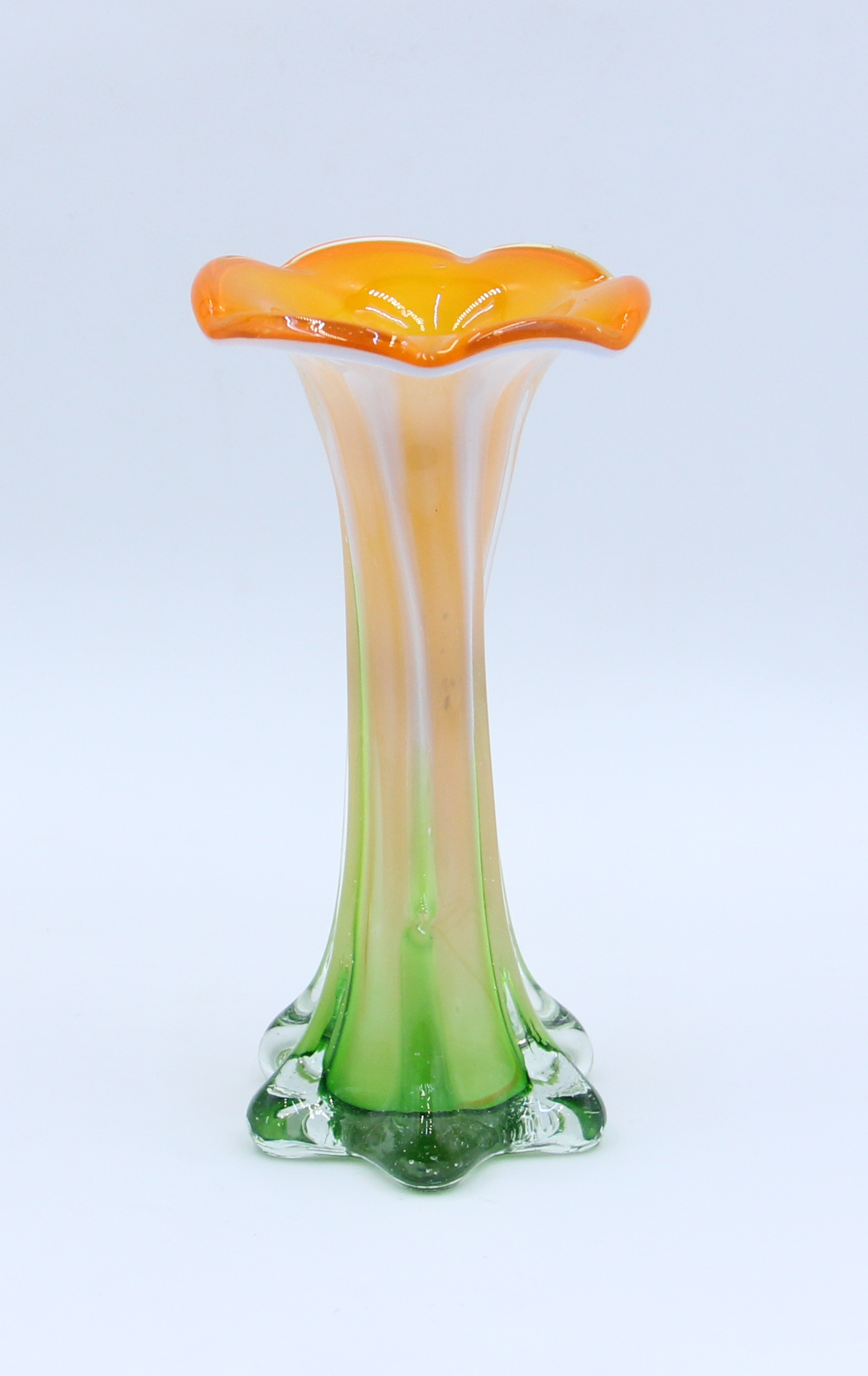 Pięknie barwiony wazon o ciekawym kształcie prawdopodobnie z Huty Szkła w Murano.