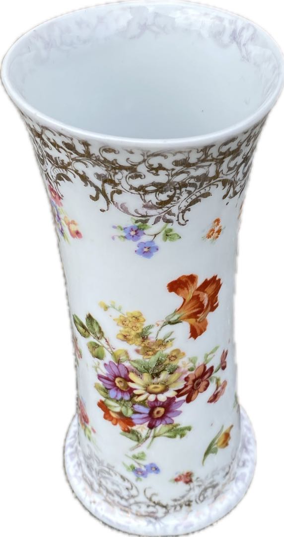 Porcelanowy wazon z wytwórni porcelany Schierholz & Sohn w Plaue Germany. Sygnatura stosowana w latach 1865-1917. Wymiary; wys.20 x 9 cm.