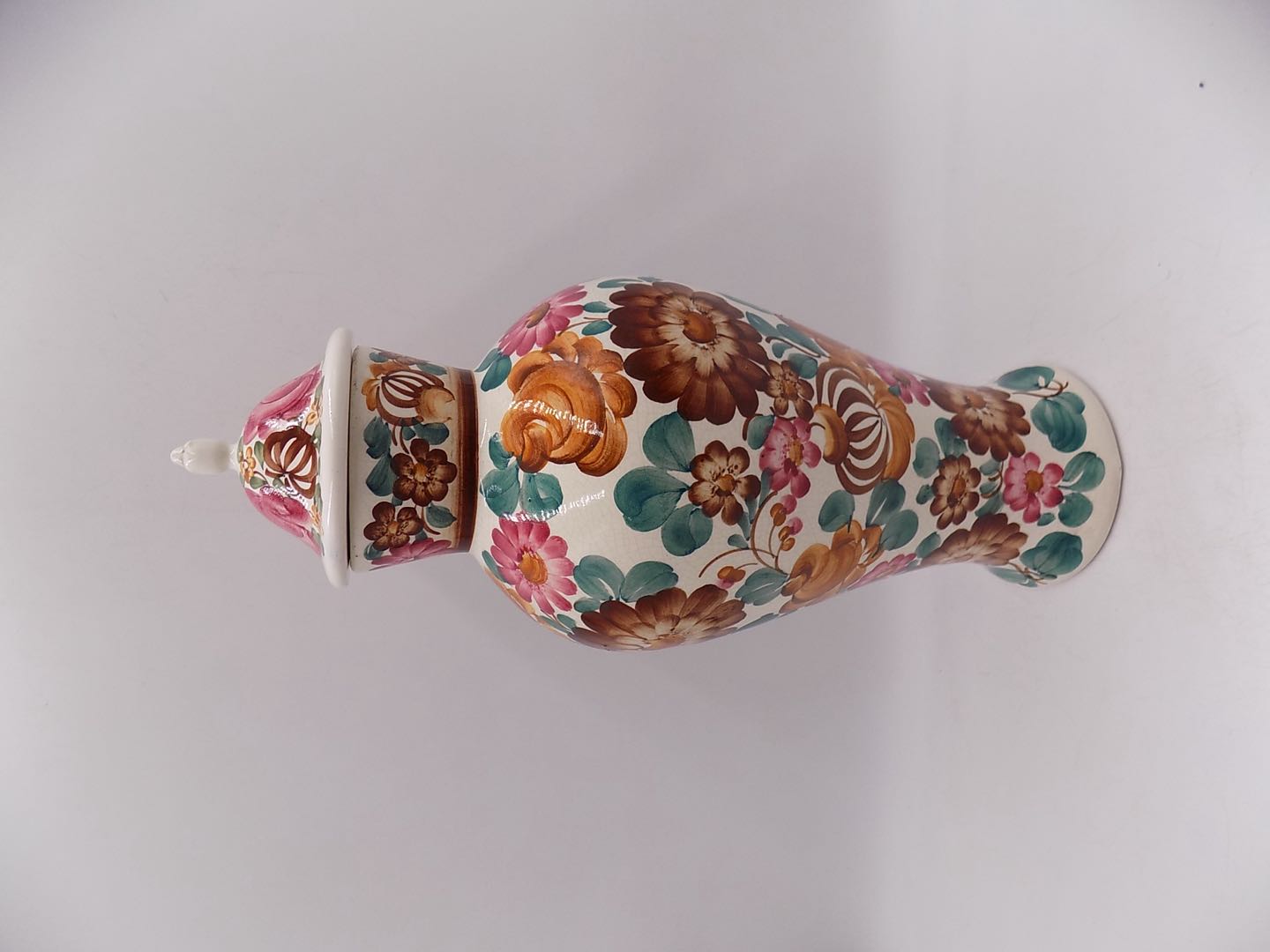 Fajansowy wazon z Włocławka z lat 70/80-tych. Sygnowany. Ręcznie malowany. Wymiary; 46 cm.