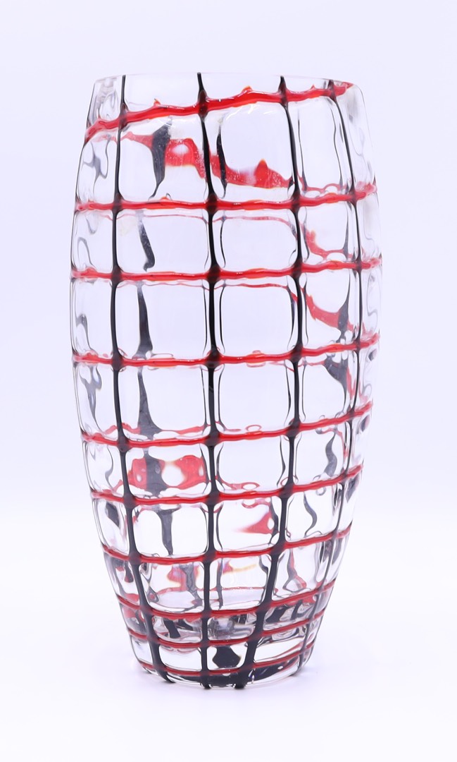 Wyjątkowy produkt będący prawdziwym hołdem dla estetyki i rzemiosła artystycznego - Wazon Pleciony Stanisław Macha HS Ząbkowice. Ten wyjątkowy wazon ożywia przestrzeń dzięki unikalnemu połączeniu pionowej i poziomej plecionki, nawiązującej do charakterystycznego stylu Huty Szkła Ząbkowice z okresu PRL.
