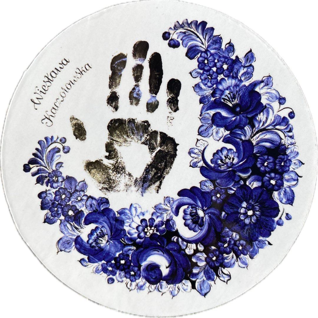 Karta kolekcjonerska z wizerunkiem malarki fajansu Haliny Wiesławy Kaczorowskiej. Na awersie popiersie malarki z jej pracą przygotowana na konkurs „Biennale fajansu 2025" a na rewersie jej praca przygotowana w ramach programu fajansowe dłonie. Praca pani Kaczorowskiej zdobyła pierwsze miejsce we wspomnianym konkursie. Karty kolekcjonerskie wydane staraniem galerii „Stary świat" pod patronatem Towarzystwa Miłośników Fajansu Włocławskiego. Wymiary; 9,2 cm. Kartę można również otrzymać gratis w różnych programach promocyjnych organizowanych przez naszą galerię.