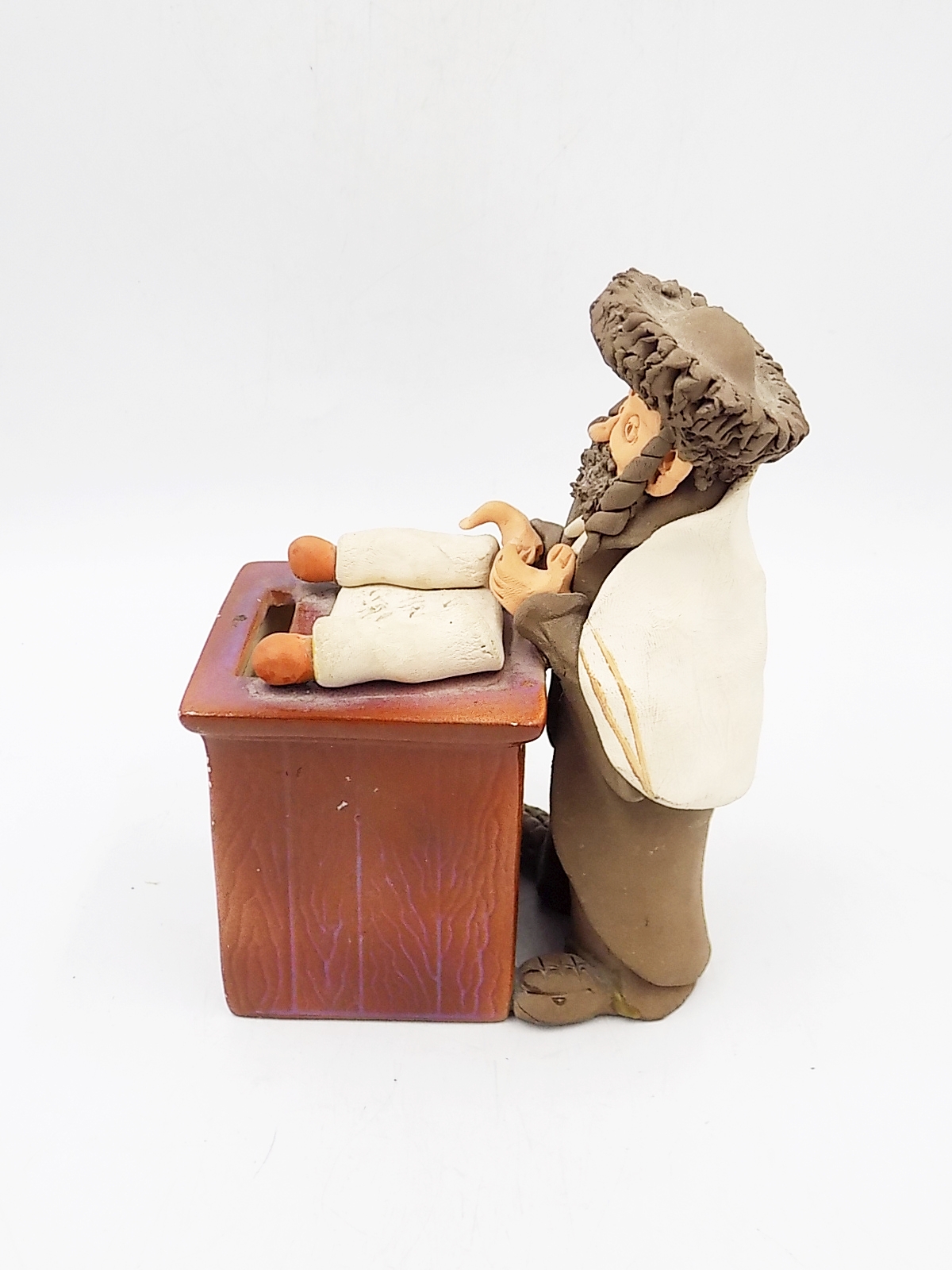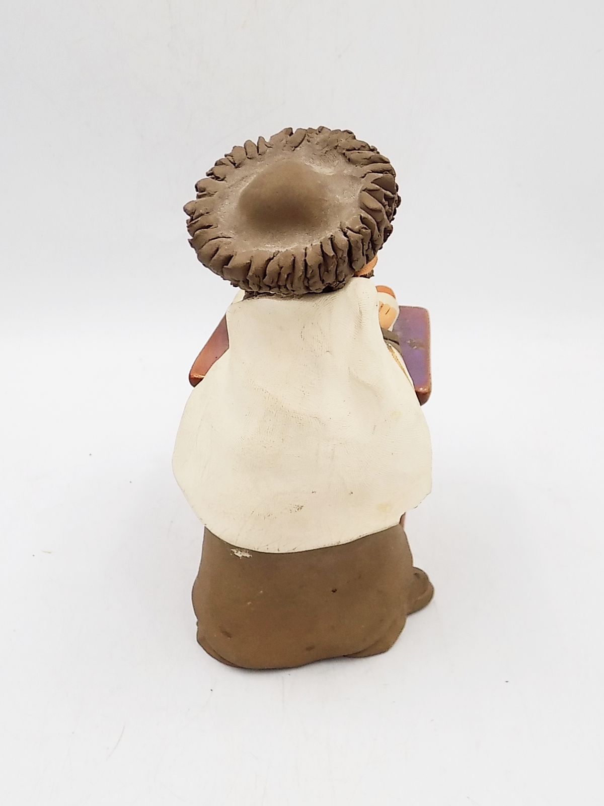 Figurka gliniana. Sygnowana. Wada pokazana na zdjęciu. Wymiary; wys.16 x 12 x 7,5 cm