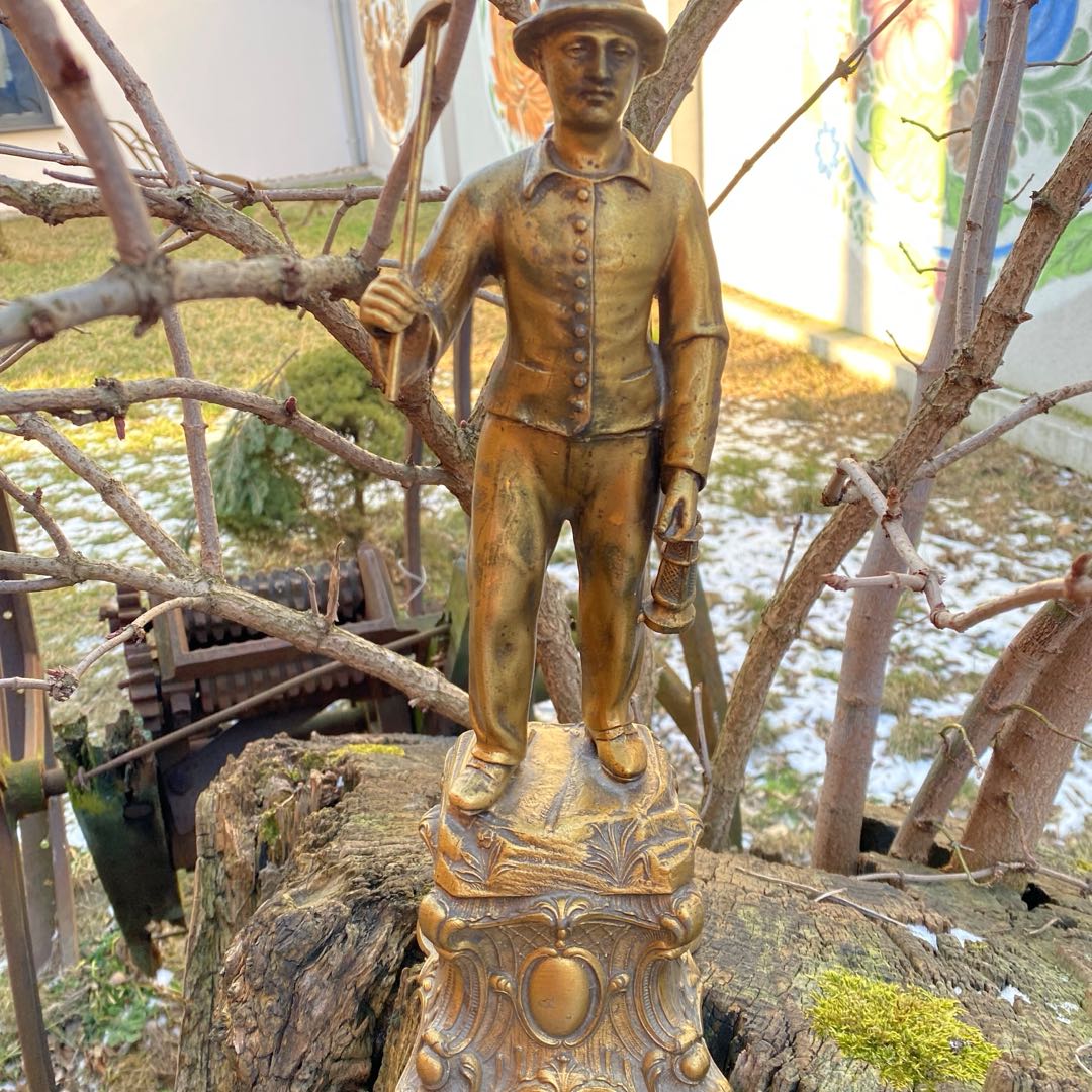 Figura z cynkalu przedstawiająca górnika prawdopodobnie z przełomu XIX/XX w. Wymiary; wys.35,5 x 11,5 cm.