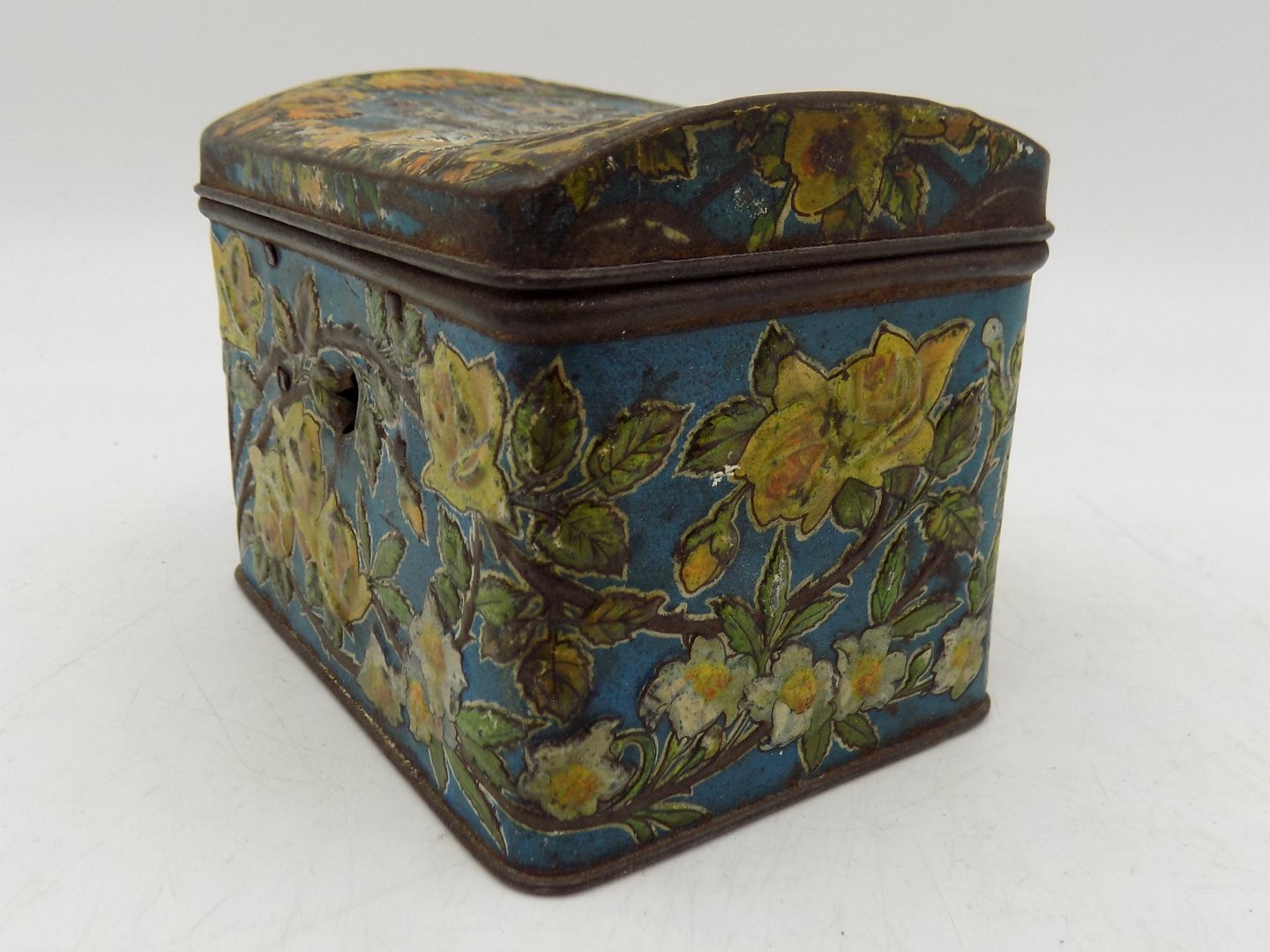 6. Potencjał renowacyjny: Pomimo wadliwego zamka, puszka wciąż ma wiele do zaoferowania. Można ją wykorzystać jako stylowy schowek lub poświęcić czas na jej odrestaurowanie i przywrócenie jej funkcjonalności.