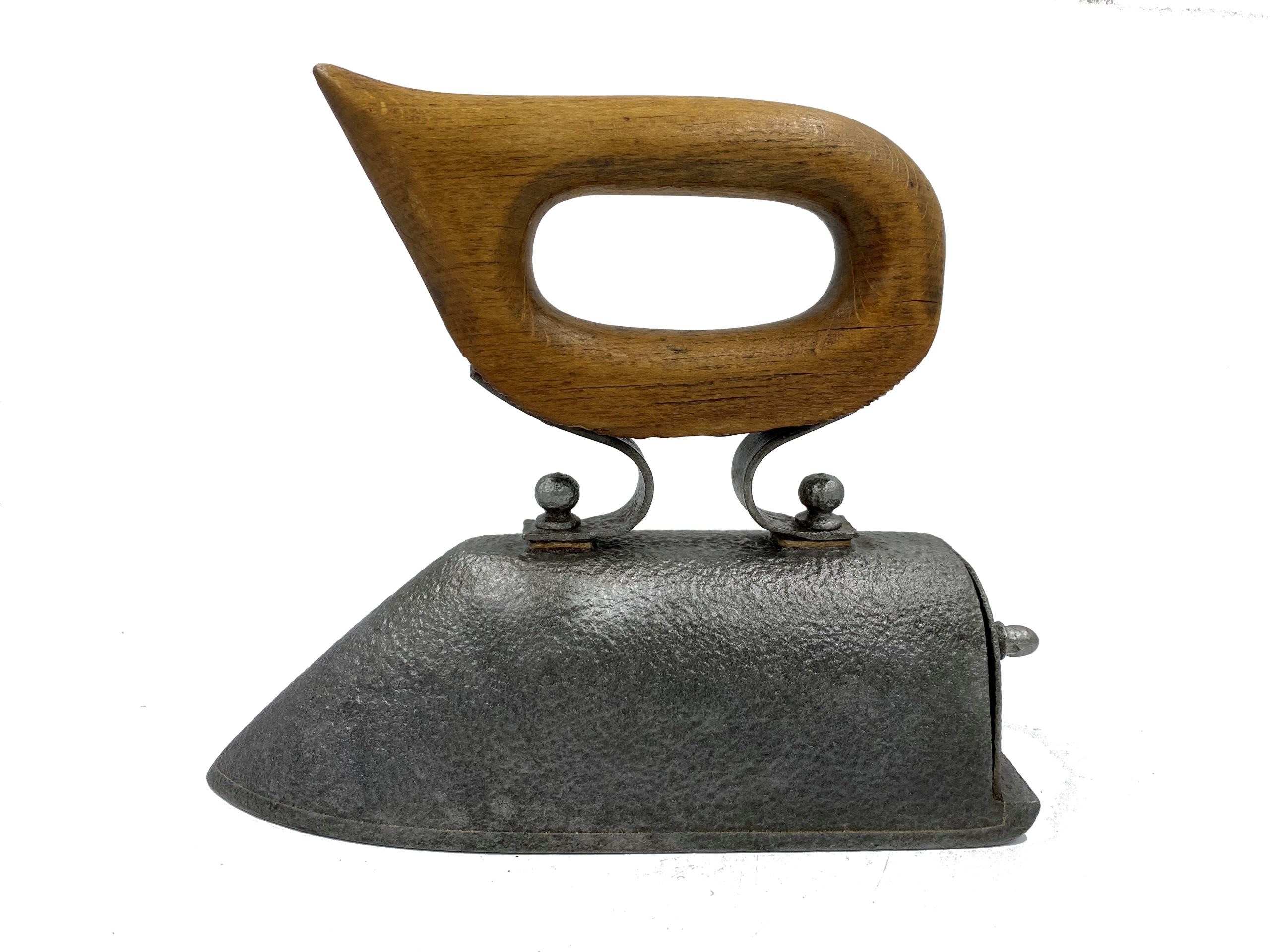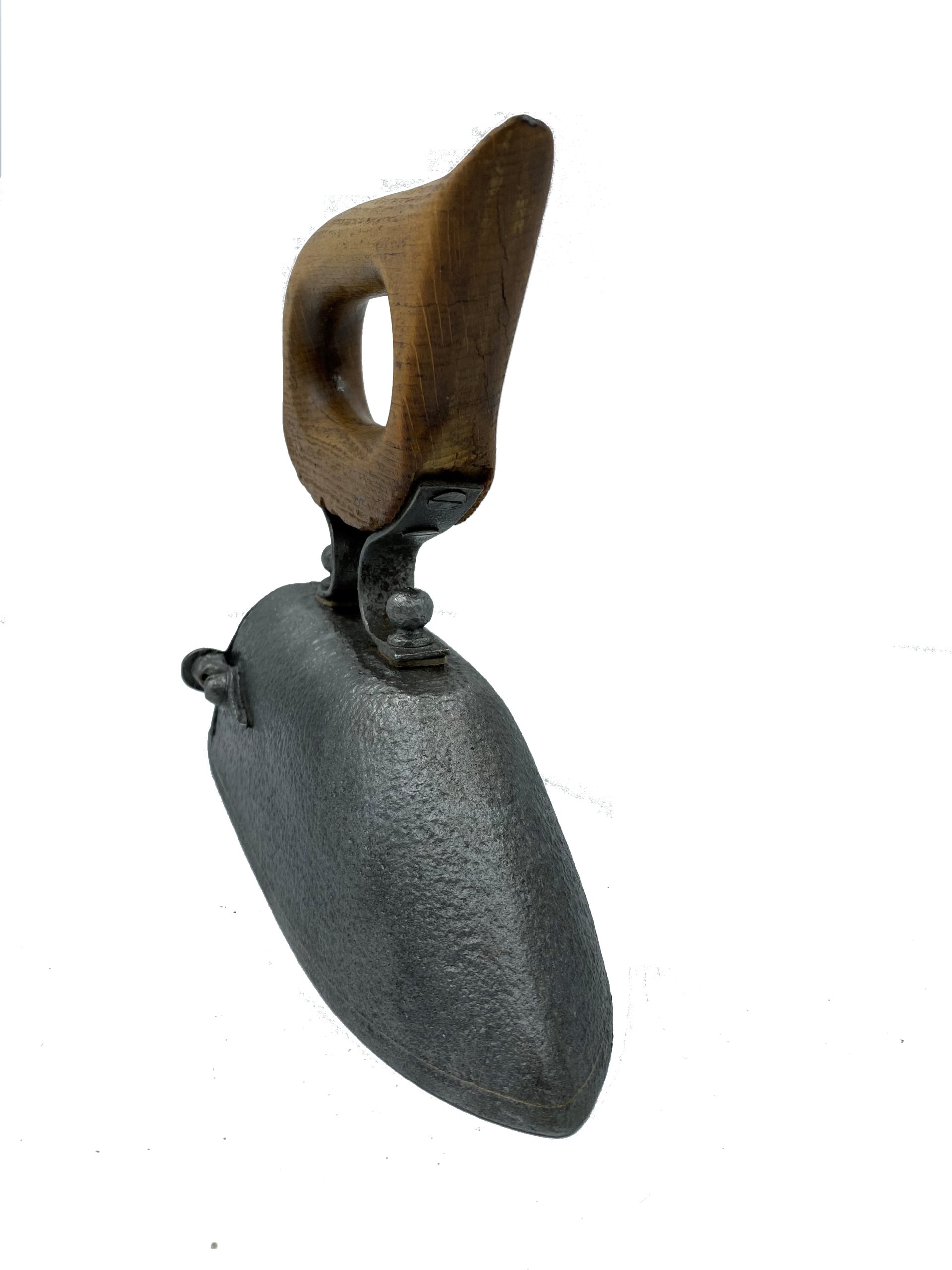Zabytkowe żelazko z przełomu XIX/XX w. Po renowacji. Wymiary; wys.19 x 22 x 8,5 cm.