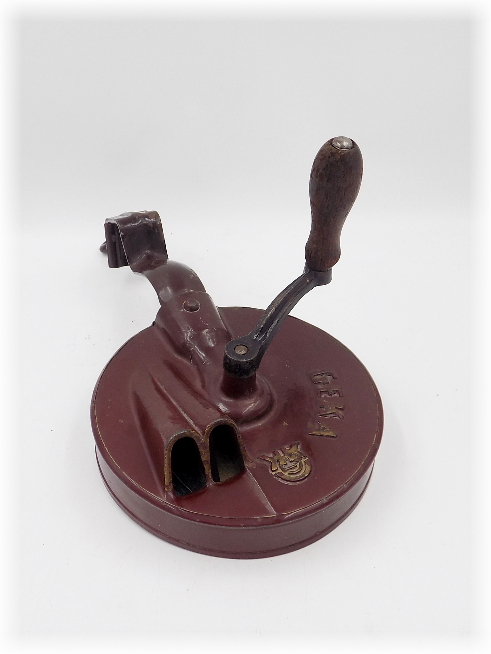Stara maszynka prawdopodobnie do cięcia migdałów marki GEKA. Sprawna. Wymiary; wys.30 x 14,5 x 15 cm