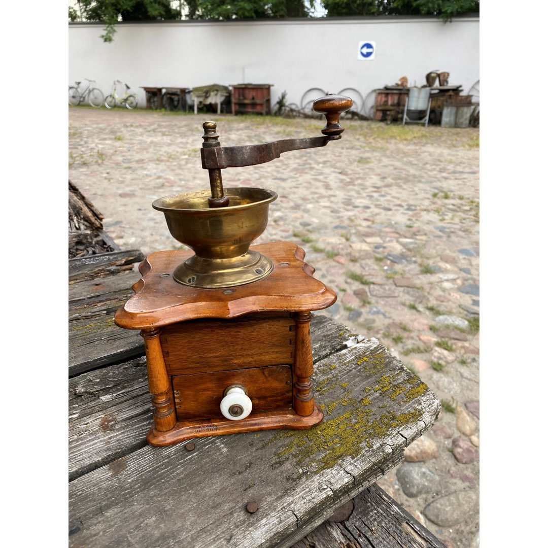 Zabytkowy młynek z przełomu XIX/XX wieku w stylu eklektycznym. Sprawny. Wymiary; wys.26 x 16,5 x 16 cm.