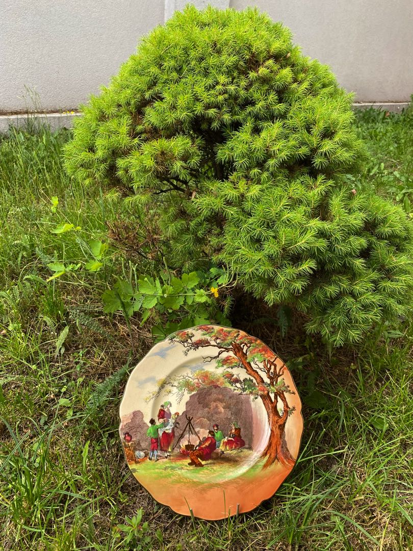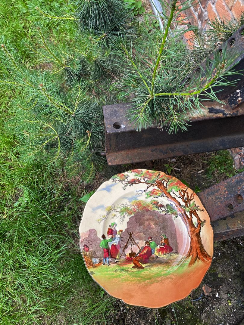 Fajansowy talerz z serii English Old Scenes z renomowanej wytwórni Royal Doulton prawdopodobnie z 1931 roku. Wymiary; wys.2 x 26 cm.